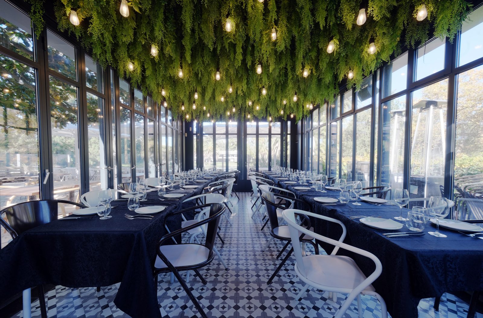 Três ambientes distintos — a esplanada ajardinada com vista para o lago, a sala interior coroada por jardim vertical e iluminação Edison, e o lounge privado — acomodam de 2 a 250 pessoas. Cozinha portuguesa contemporânea, carta de vinhos curada por região e cocktails de autor completam uma experiência pensada ao detalhe.